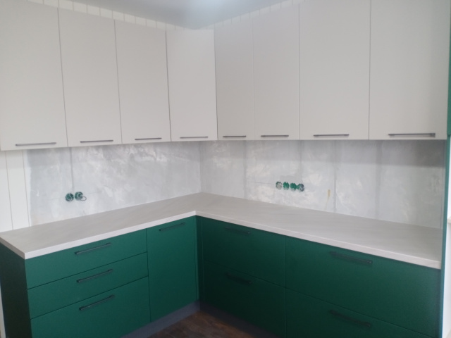 Г-образная кухня с бархатистыми фасадами