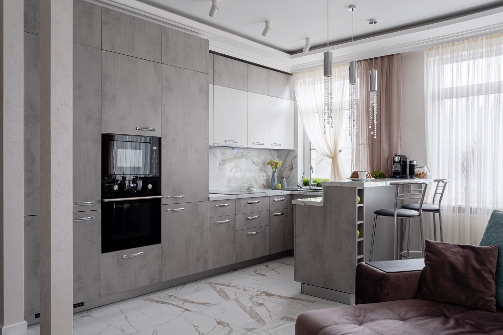 • Лаконичность: Чистые линии позволяют кухне гармонично вписаться как в лофт, так и в неоклассику.
