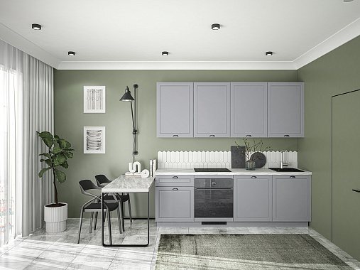 Кухня Лея — компактное готовое решение в классическом стиле, сочетающее элегантный дизайн и абсолютную функциональность. Изящные фасады с рамочной фрезеровкой придают ей нотку утончённости, а до мелочей продуманная конструкция делает её идеальной для небольшого помещения, в котором каждый сантиметр должен быть полезным.