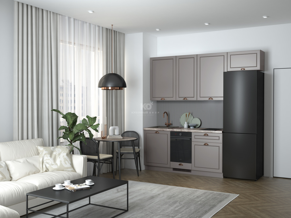 Лея от бренда «Кухонный Двор» — это гармоничное сочетание классической эстетики и современных технологий. Кухня выполненная в универсальной прямой планировке, органично вписывается в любой интерьер и создаёт атмосферу уюта и тепла в доме.