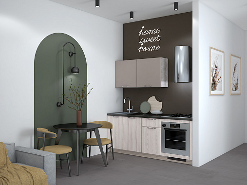Кухня Уна — это абсолютная гармония эстетики и заложенных смыслов: компактная, стильная, продуманная в каждой детали. Она идеально подойдет тем, кто выбирает минимализм и стремится к порядку даже в самых небольших пространствах.