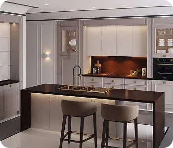 Если ни одно из готовых решений не будет соответствовать особенностям вашего помещения, мы готовы разработать проект кухни на заказ по индивидуальным размерам. Наши специалисты учтут все ваши пожелания относительно дизайна, цвета и наполнения гарнитура.