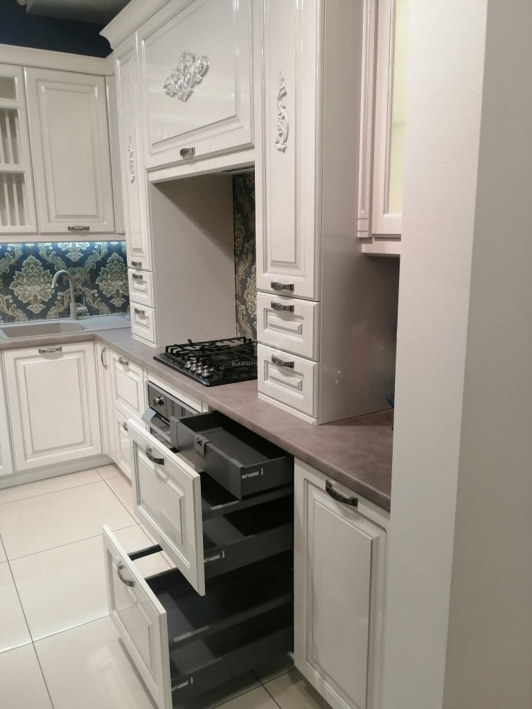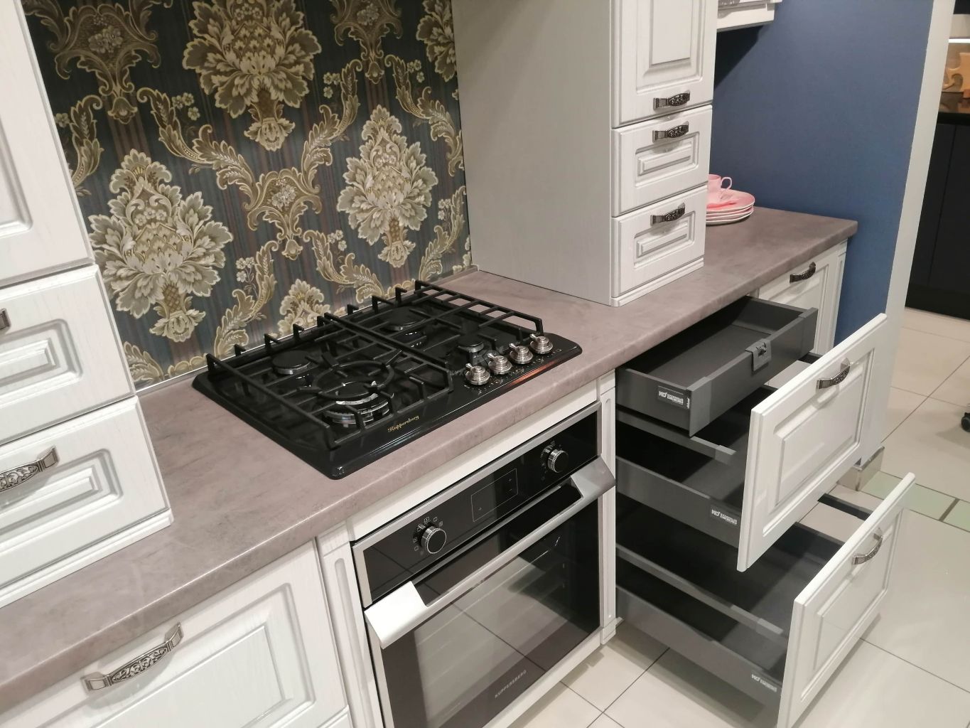 В стоимость образца входит: мебель, столешница, инновации. В комплекте продается также техника и аксессуары общей стоимостью со скидкой 169 218 руб.